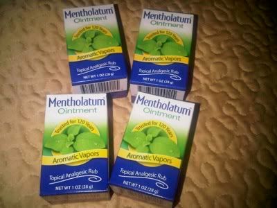 OK so I was wondering why Mentholatum came in boxes b/c I remembered my mom and dad have all my life had that little jar next to their bed. I come from a long line of Menthol. :)